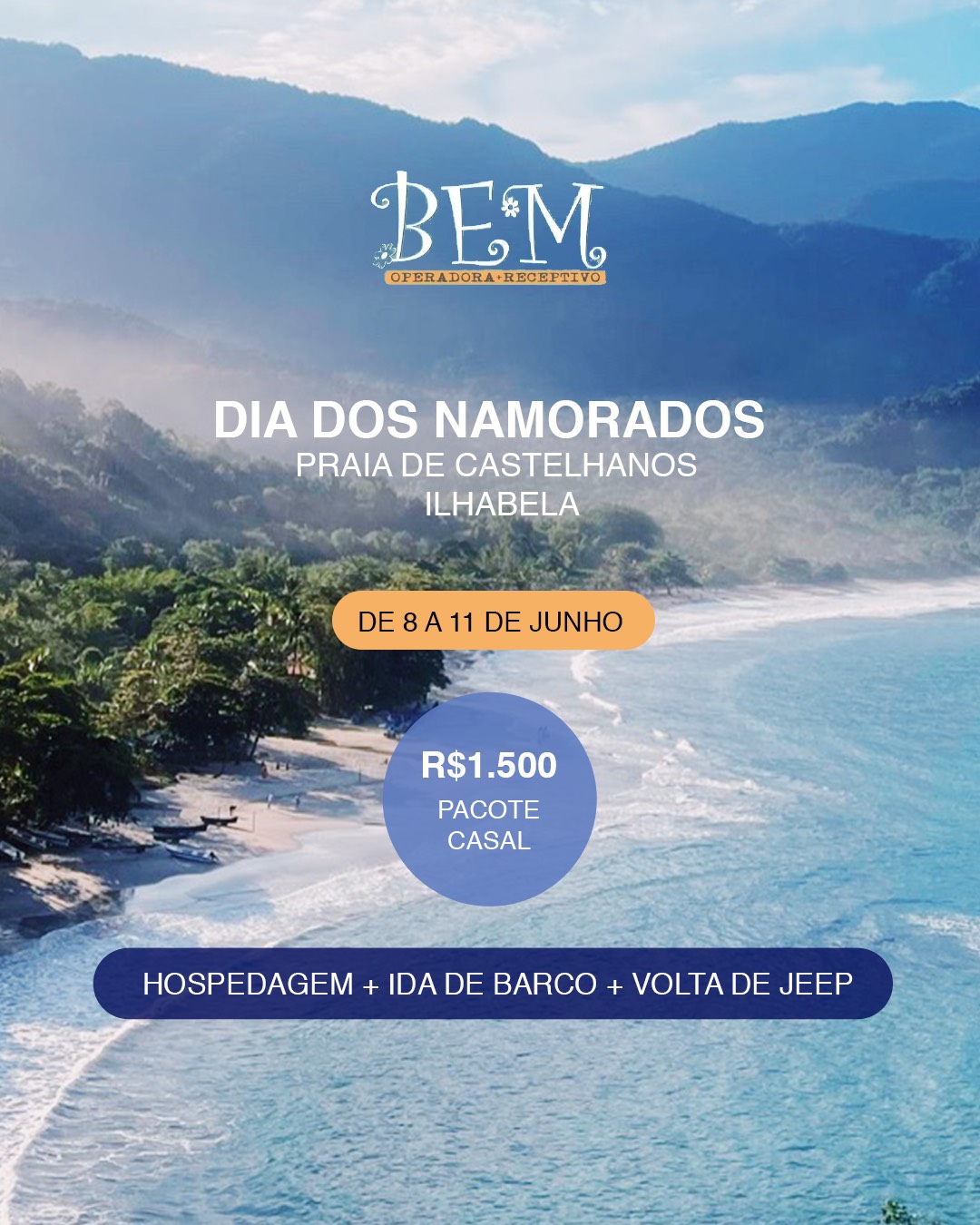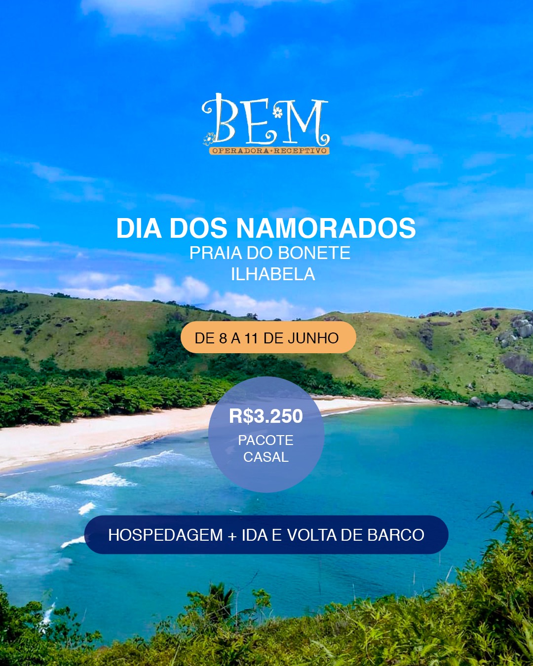 Pacotes e Promoções PACOTES PARA O DIA DOS NAMORADOS Clique na imagem para saber mais! ILHABELA CASTELHANOS BONETE